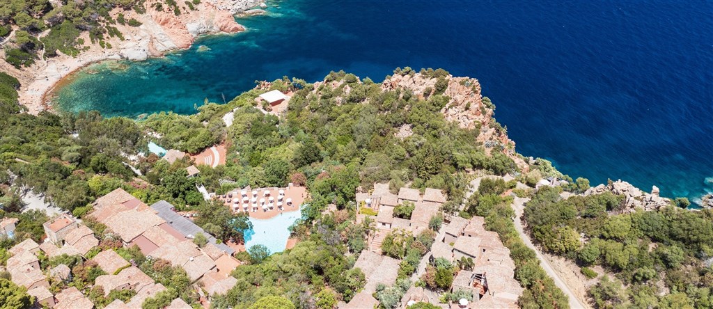 Hotelová část BORGO CALA MORESCA leží na kopci na severním okraji resortu a vypadá jako stará sardinská vesnice, jejíž kouzlo pramení z využití starých materiálů, z kombinace tepaného železa a dřevěných překladů z jalovce.