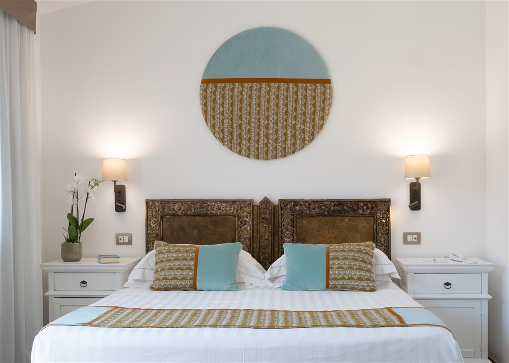 Útulný hotel disponuje 48 pokoji, situovanými v přízemí (s patiem) nebo v prvním patře (s balkonem). Pokoje jsou vkusně a účelně zařízeny ve středomořském stylu, v elegantních pastelových odstínech, s malovaným dřevěným nábytkem a mramorovými stoly. Všechny mají zrenovované koupelny se sprchovým koutem a fénem a jsou vybaveny klimatizací, TV/Sat (v některých pokojích umístěna v zavírací skříni), varnou konvicí, telefonem, minibarem a trezorem a možností venkovního posezení.