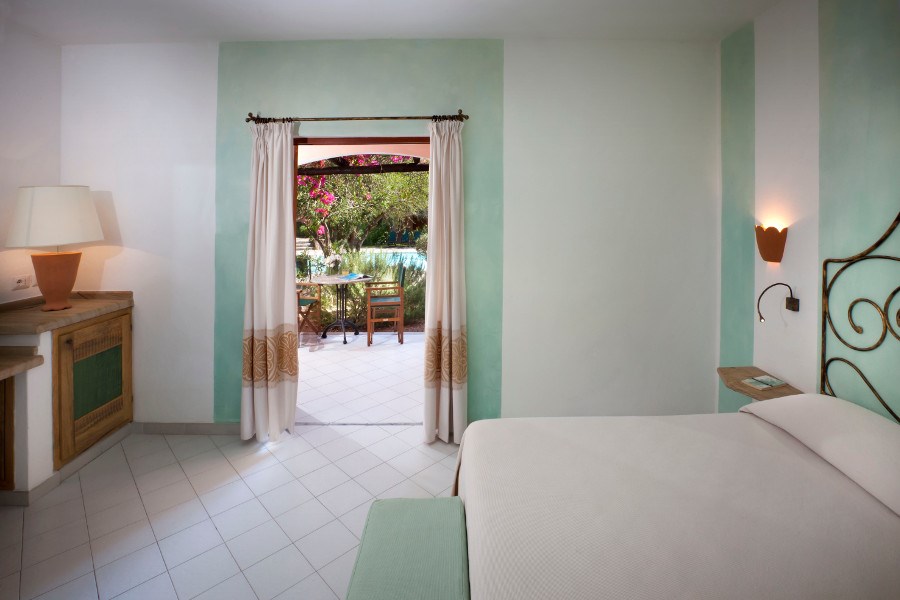 Pokoje jsou zařízené v sardském stylu, s využitím architektonických prvků a materiálů typických pro oblast Costa Smeralda. Postýlka pro dítě do 2 let zdarma (nutno hlásit při rezervaci pokoje) - kalkulace pobytu s dítětem do 2 let na vyžádání v CK.