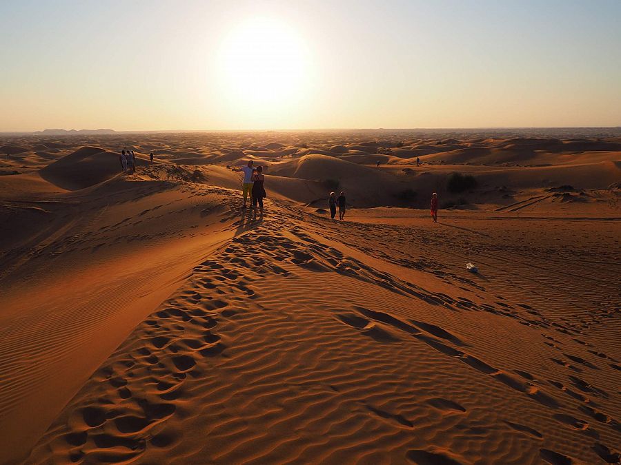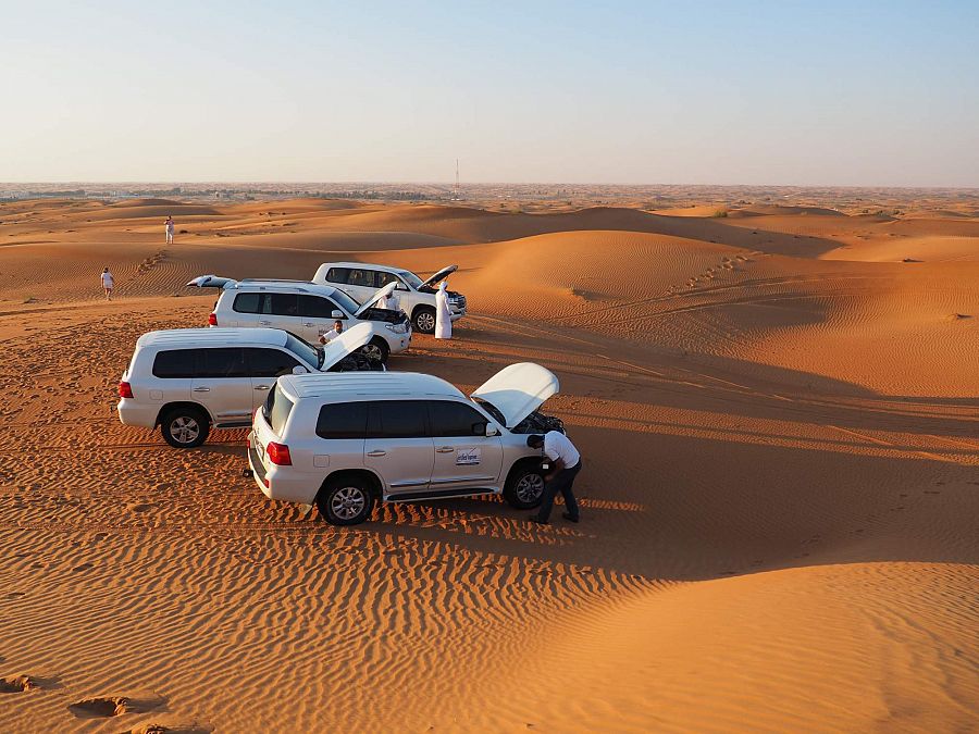 4. den: Během dnešního dne uvidíte samá nej - nejluxusnější hotel Burj Al Arab i další skvosty města. Den zahájíme přejezdem po hlavní tříd ě Jumeirah Road k dubajskému symbolu - nejluxusnějšímu hotelu na světě Burj Al Arab . Procházka po krytém souku (tržišti), odkud jsou na hotel nádherné výhledy a fotostop na veřejné pláži vedle hotelu. Pak nás čeká další ze symbolů Dubaje - uměle vytvořená palma Palm Jumeirah. Na její konec můžete dojet i jednokolejovým vláčkem. Především zde uvidíte luxusní hotel Atlantis , v němž se nachází aquapark. Odpoledne přejedeme ke druhému největšímu nákupnímu centru Dubaje Mall of the Emirates , kde se nachází místní rarita - krytá lyžařská sjezdovka , na které si můžete zalyžovat i vy. Osobní volno k nákupům a obědu. V případě zájmu je možné se svlažit a vykoupat na nedaleké pláži. V podvečer individuální program, např. lze absolvovat zážitkovou jízdu jeepem v písečných dunách pouště.