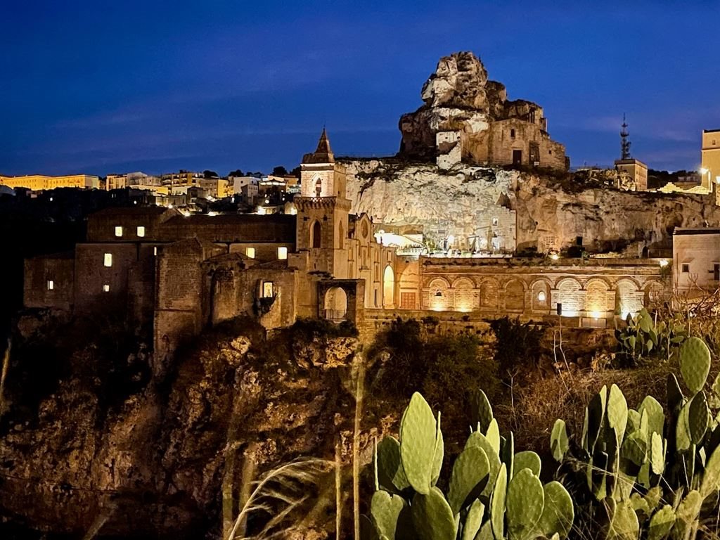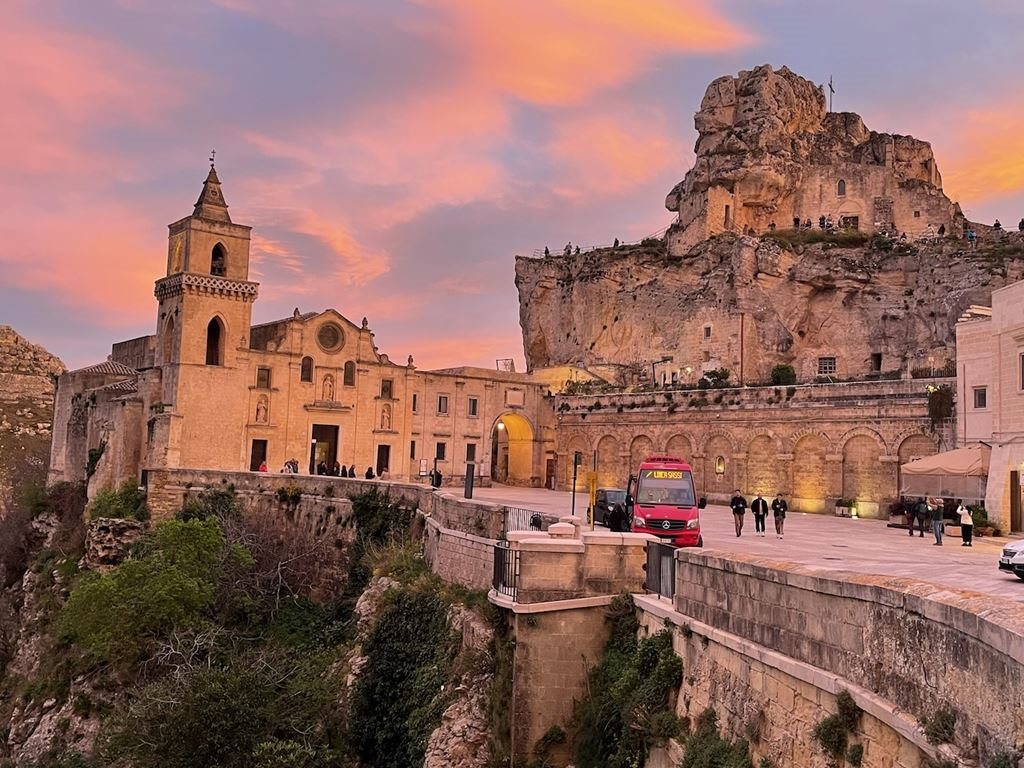 3. den: : Po časné snídani vyrazíme směr Pescara a Bari do hornatého regionu Basilicata. Neopomeneme ani tajuplnou citadelu Castel del Monte , která je od roku 1996 zapsána na seznamu kulturního dědictví UNESCO. Pěšky či mikrobusem vystoupáme k tomuto osmibokému hradu ze 13. století, odkud se nabízí nádherný výhled, a zájemci budou mít možnost si prohlédnout jeho interiér. Poté vyrazíme do hotelu v Mateře , kam dorazíme v podvečerních hodinách. Po ubytování nás autobus doveze na okraj starého města nad mohutnými stržemi, vytesaného do skály. Večerní procházka ulicemi slavných čtvrtí Sassi di Matera s jeskynními obydlími (UNESCO) patří k nezapomenutelným zážitkům. Volný čas je možné využít na večeři. Nakonec se pěšky (asi 3 km) či autobusem vrátíme na hotel.