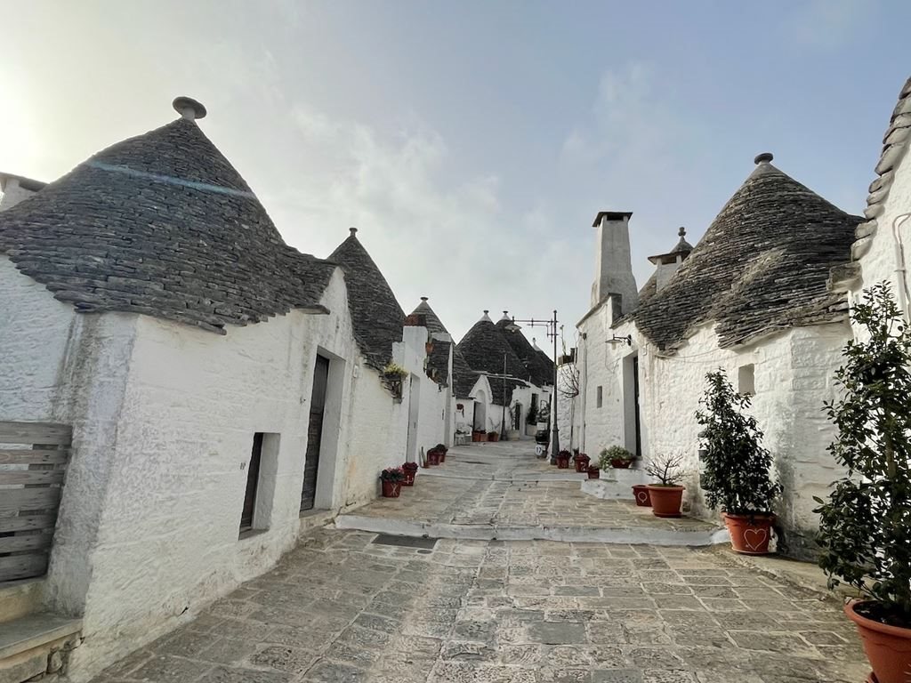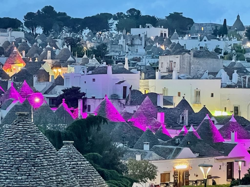 4. den: : Po snídani mohou zájemci ještě jednou vyrazit do Matery, aby si ji prošli za dne, i přes lanový most lze vystoupat na vyhlídku k jeskyním vedle Matery, naskytnou se krásné pohledy. Poté zamíříme do oblasti proslulé domky trulli . Odpoledne dojedeme do světoznámého Alberobella , kde se nachází více jak tisíc trulli domků. Po ubytování v hotelu nedaleko centra si je při procházce můžeme prohlédnout. Čeká nás volný večer na toulání se městem i na večeři.