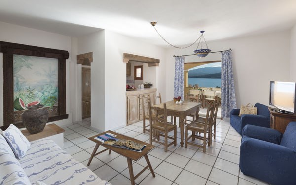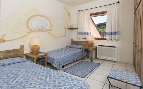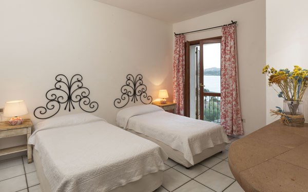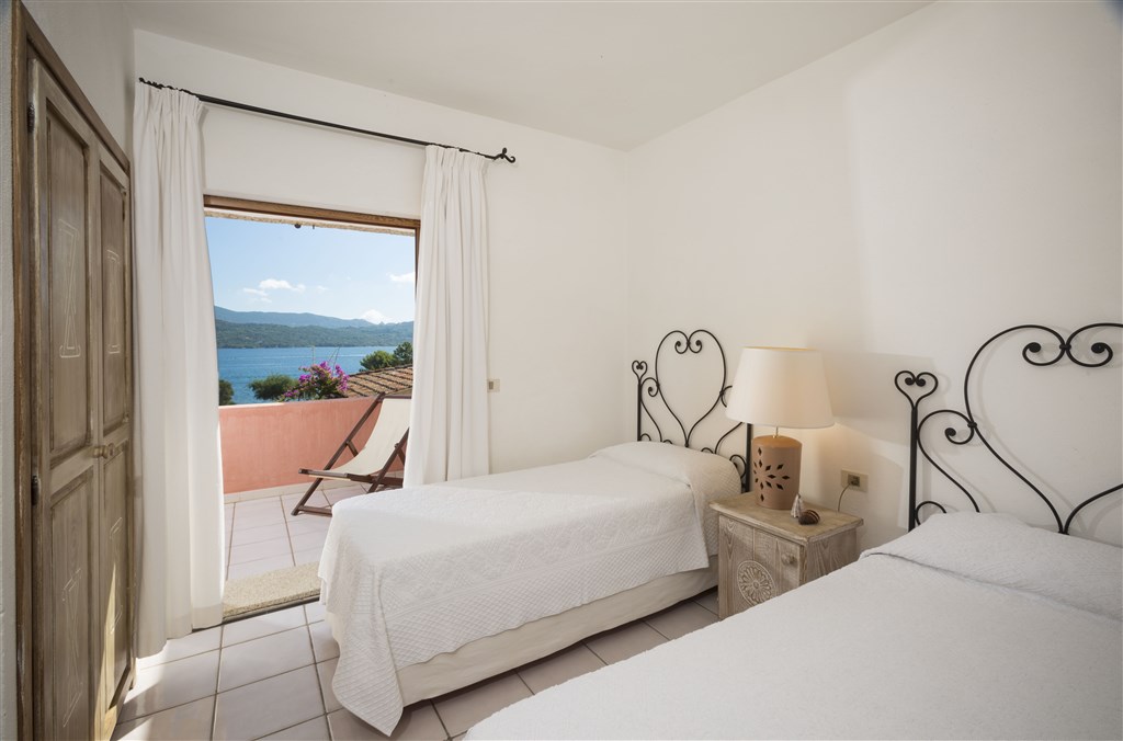 VILA B s výhledem na moře - ložnice s manželským lůžkem a koupelnou, pokoj se dvěma lůžky, které lze od sebe oddělit, druhá koupelna, kuchyně, obývací pokoj se dvěma rozkládacími křesly nebo rozkládacím dvoulůžkovým divanem. Max. obsazenost 6 dospělých + INF.