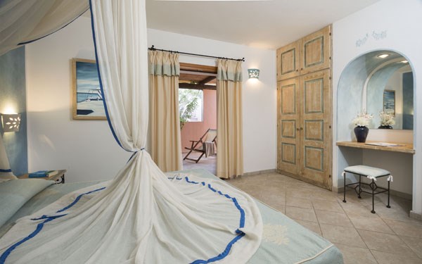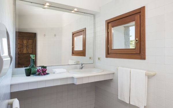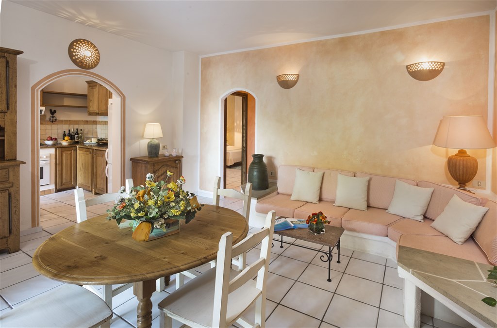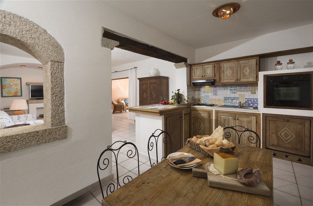 Vybavení: Resort Cala di Falco tvoří hotel, residence s apartmány (od hotelu vzdálena přes místní komunikaci) a vily. Celý komplex je a vkusně postaven s důrazem na typické architektonické detaily, jako je kámen, dřevo, náměstíčka a udržovaná zahrada.