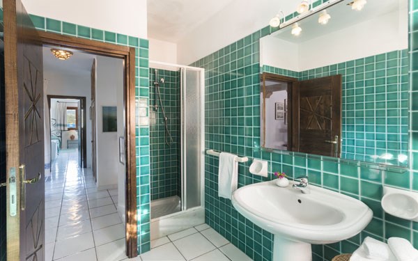 VILA GINESTRA s výhledem na moře- ložnice s manželským lůžkem a koupelnou (jen WC a umyvadlo), pokoj s manželským lůžkem, další dva pokoje vždy se dvěma lůžky, další dvě koupelny, kuchyně, obývací pokoj. Gril. Max. obsazenost 8 dospělých + 2 INF.