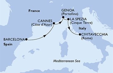 Barcelona (Španělsko) - Cannes (Côte d Azur) (Francie) - Janov (Portofino) (Itálie) - La Spezia (Cinque Terre) (Itálie) - Civitavecchia (Rome) (Itálie). Loď je součástí…