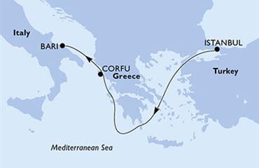 Istanbul (Turecko) - Corfů (Řecko) - Bari (Itálie). Loď je součástí flotily plavební společnost MSC Cruises, která je soukromou rodinnou firmou se sídlem ve Švýcarsku…