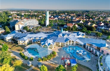 Až 2 děti do 6 let ZDARMA. Moderní hotel se nachází v těsné blízkosti areálu termálních lázní se kterým je přímo propojen - vnitřní a venkovní termální bazény,…